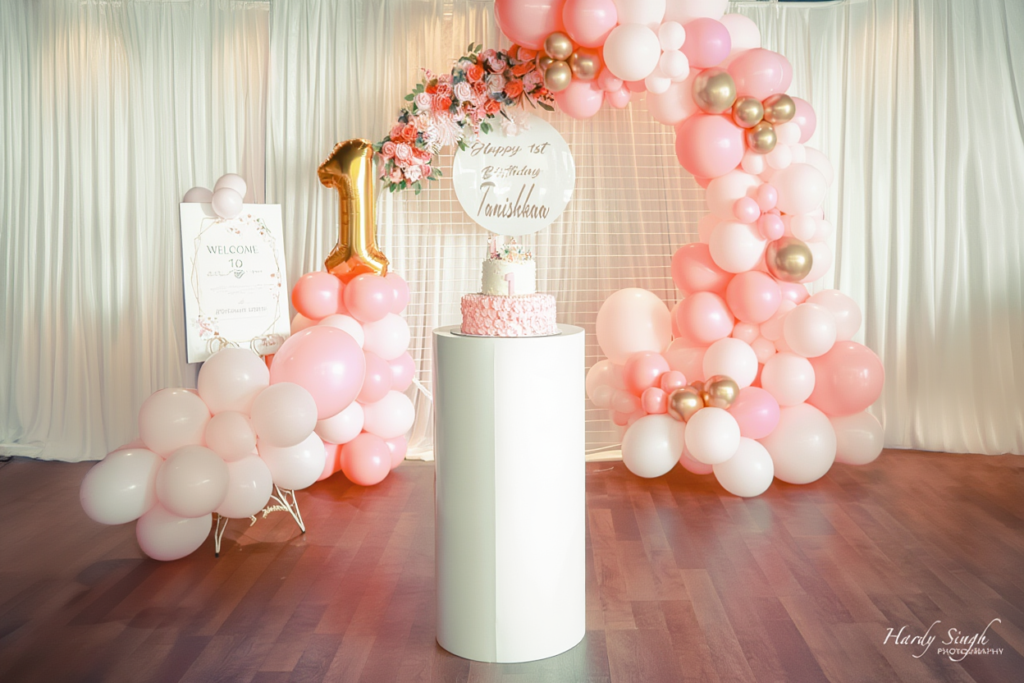 Balloon decoration remains the heart of birthday styling. Organic balloon garlands, pastel and neutral tones, chrome balloons, and mixed textures are trending across Melbourne. When paired with cake tables and floral props, balloon décor creates stunning photo moments.